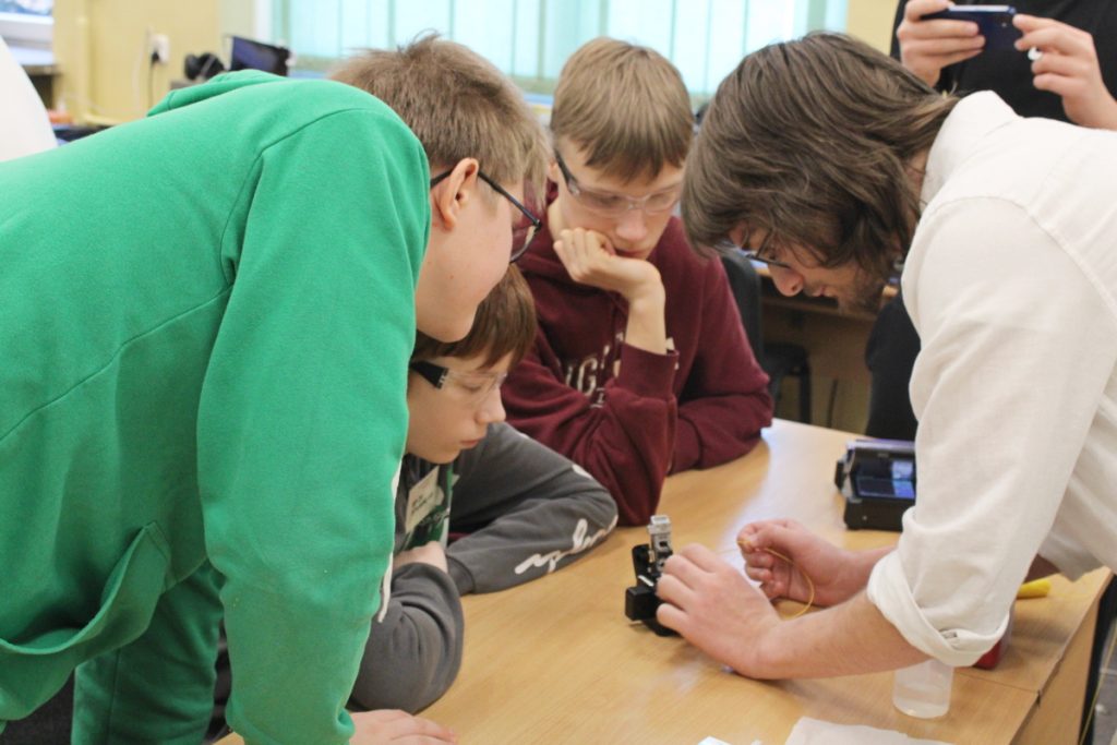 W zadaniu drugim uczestnicy musieli zmierzyć się z zadaniem wybitnie manualnym – z dwóch pigtaili światłowodowych mieli wykonać patchcord – czyli nauczyli się spawać światłowody. Każdy z członków drużyny miał wykonać jeden spaw (zadanie drugie rozgrywane było w pracowni technik światłowodowych). Dodatkowo obowiązywał limit czasowy. Nad przebiegiem zadania, a szczególnie nad przestrzeganiem zasad BHP, oprócz nauczycieli, czuwali przypisani do każdego zespołu instruktorzy – uczniowie Technikum.
