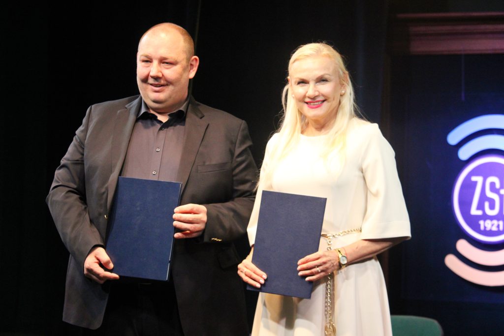 Wieloletnim Partnerem-Przyjacielem ZSŁ jest firma INSTOM, która została nagrodzona w warszawskim Konkursie „Pracodawca Przyjazny Szkołom Zawodowym – EduEmployer”. Z tej okazji Dyrektor Operacyjny INSTOM Dorota Samsonowicz – Kaczmarek oraz Prezes Zarządu Tomasz Kaczmarek odebrali Medalem 100-lecia Szkół Łączności.