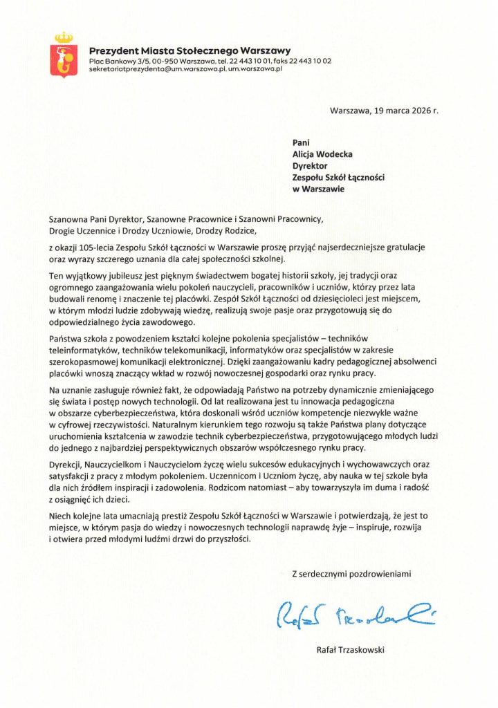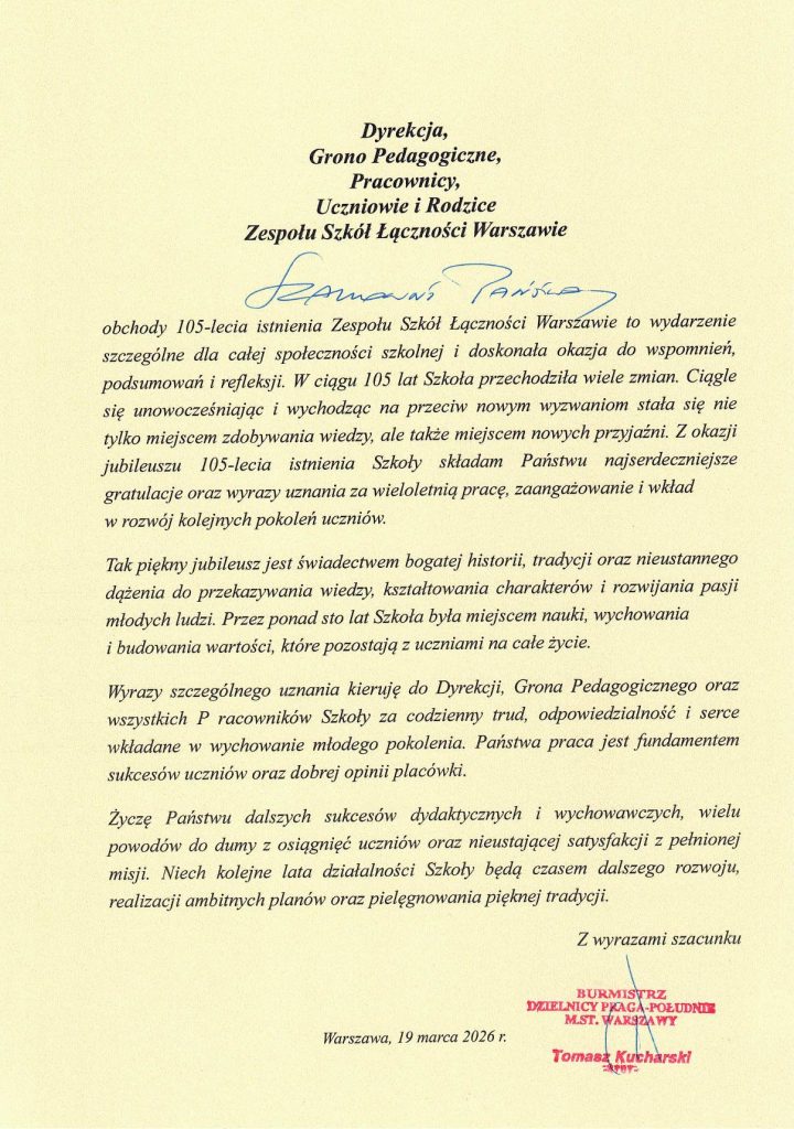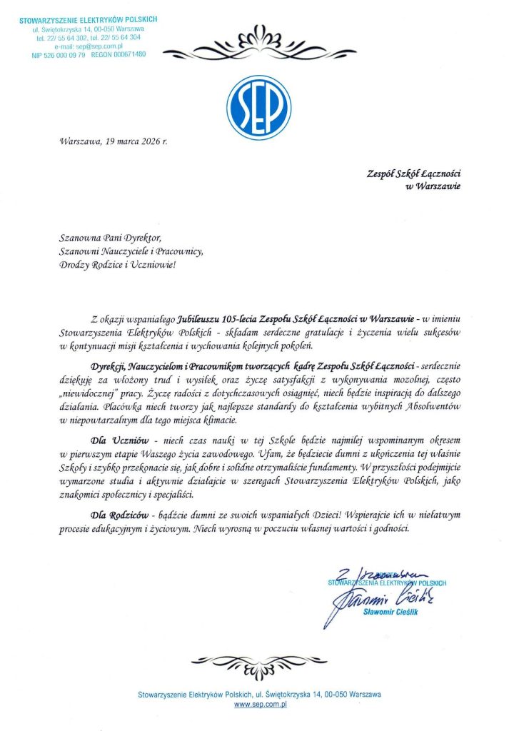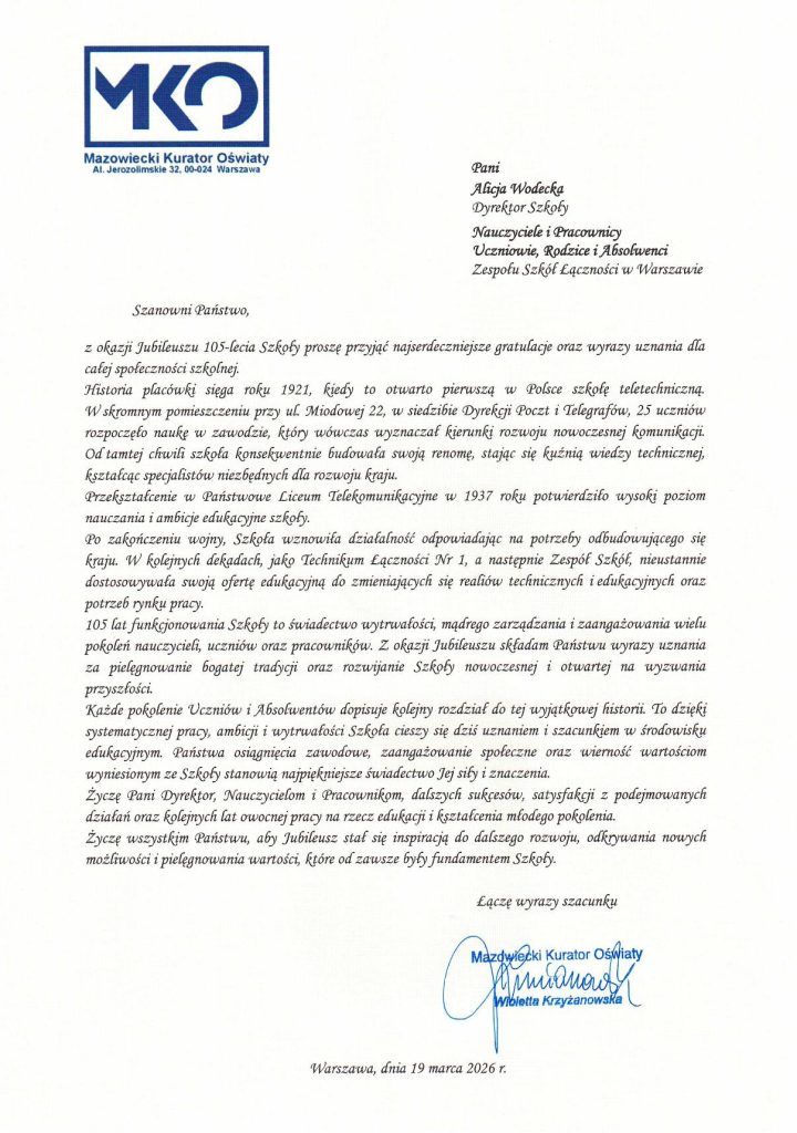 Rok 2026 jest rokiem Jubileuszu 105-lecia Szkół Łączności.