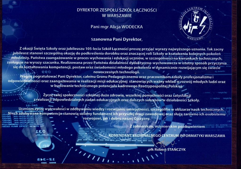 – płk Stańczyk Robert – Komendant Regionalnego Centrum Informatyki Warszawa